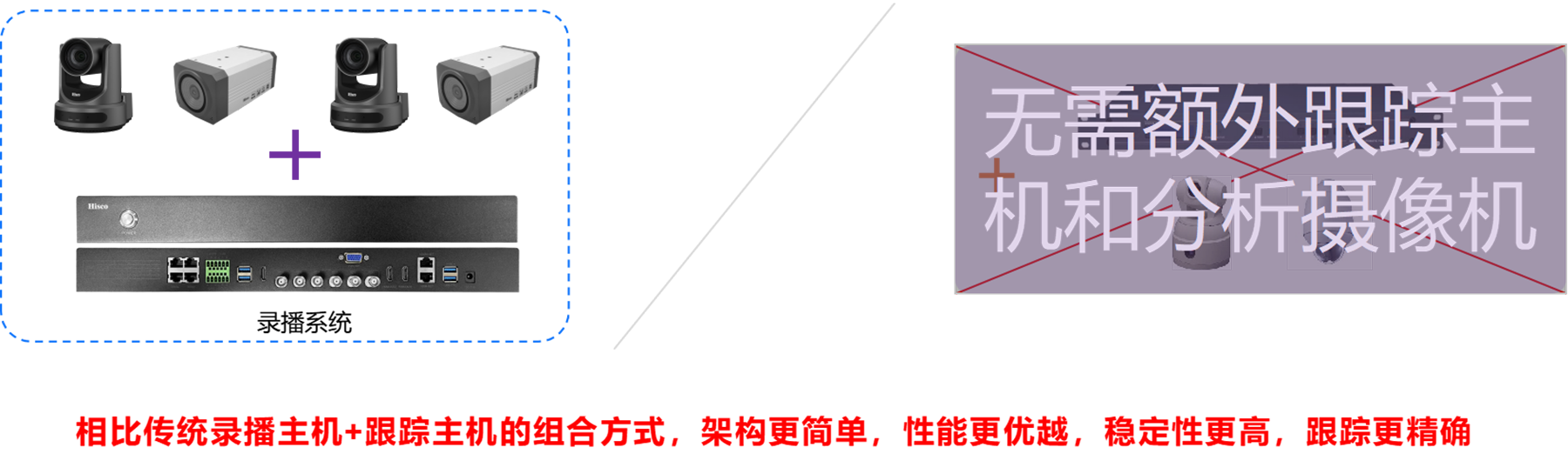 • 智能跟踪,无需额外跟踪主机和分析摄像机,录播主机内嵌有图像识别和图像跟踪模块,根据全景画面图像进行分析,使用最先进的跟踪算法,准确率达90%以上。