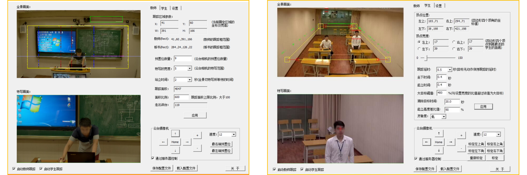 • 支持人脸识别,识别人脸轮廓,检测活动目标。采用三维图像复合图像识别分析算法,能够智能判断教师、学生的行为及动作,用独立专用的跟踪探测设备进行3D景深数据的采集,可分别对老师、学生和板书进行独立跟踪。