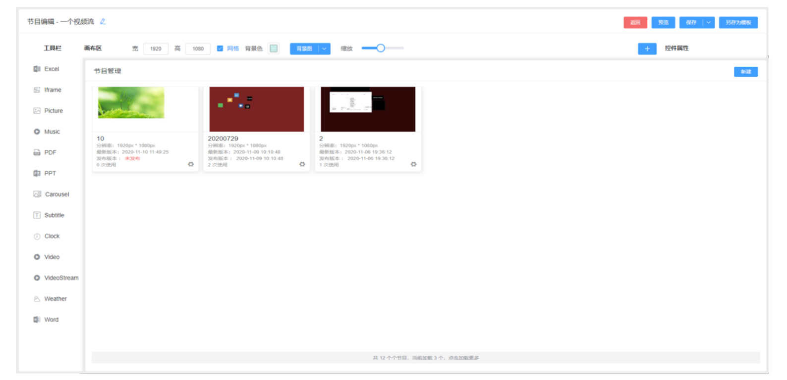 独特的可视化列表,使制作的节目内容简明扼要的呈现给操作人员,区别于节目名称,在操作人员针对节目的编辑、发布等时提供更高效的节目选择方式。